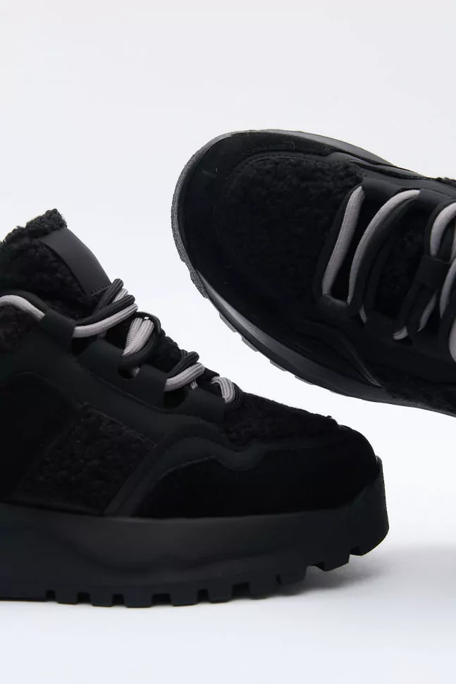 Кросівки, навіть утеплені, зазвичай менш об’ємні, ніж традиційні черевики чи чоботи. Тому важливо збалансувати силует, щоб нижня частина не здавалася занадто маленькою. Також звертай увагу, щоб образ виглядав цілісним як із обраним верхнім одягом, так і без нього. І не забувай про аксесуари, які дозволяють правильно розставити акценти – наприклад, пара яскравих рукавичок, хутряний шарф або сумка із бахромою.
